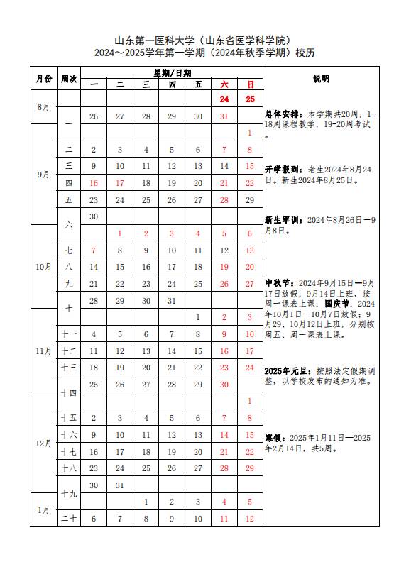 2024年秋季学期校历