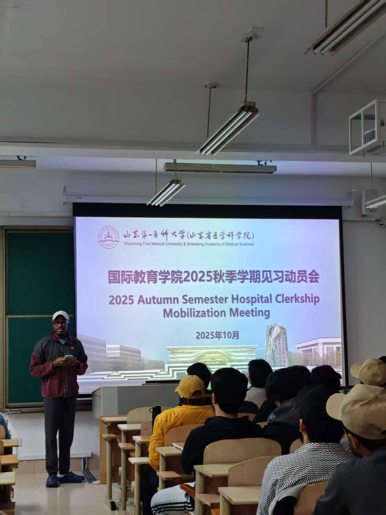 本次动员大会明确了临床的见习任务与要求,强化了留学生的安全意识与纪律观念,为2025年秋季学期留学生临床见习工作的顺利开展奠定了坚实基础。