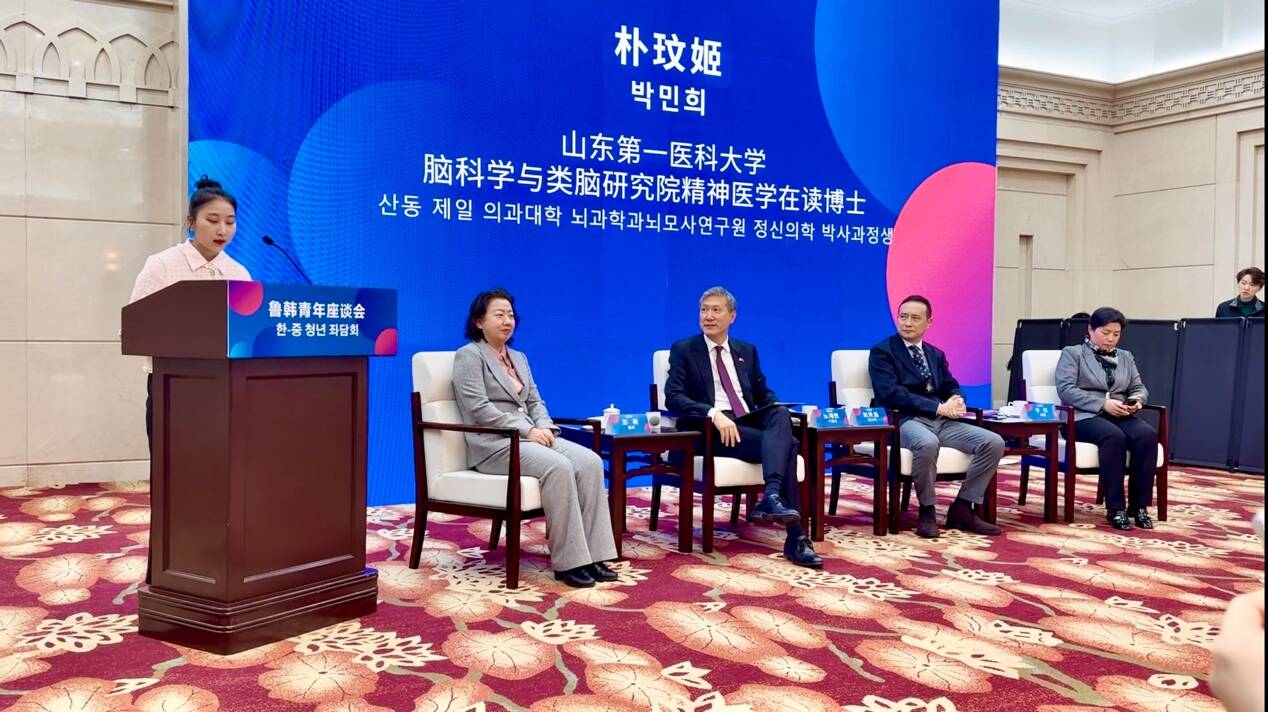 座谈会上,朴玟姬以“我与山东的故事”为主题,分享了自己从韩国太极拳运动员到精神医学博士生的成长历程。她表示,从初到中国求学、训练,到在山东第一医科大学系统开展科研学习,山东不仅是她完成学业的重要阶段,更逐渐成为她心中的“第二故乡”。