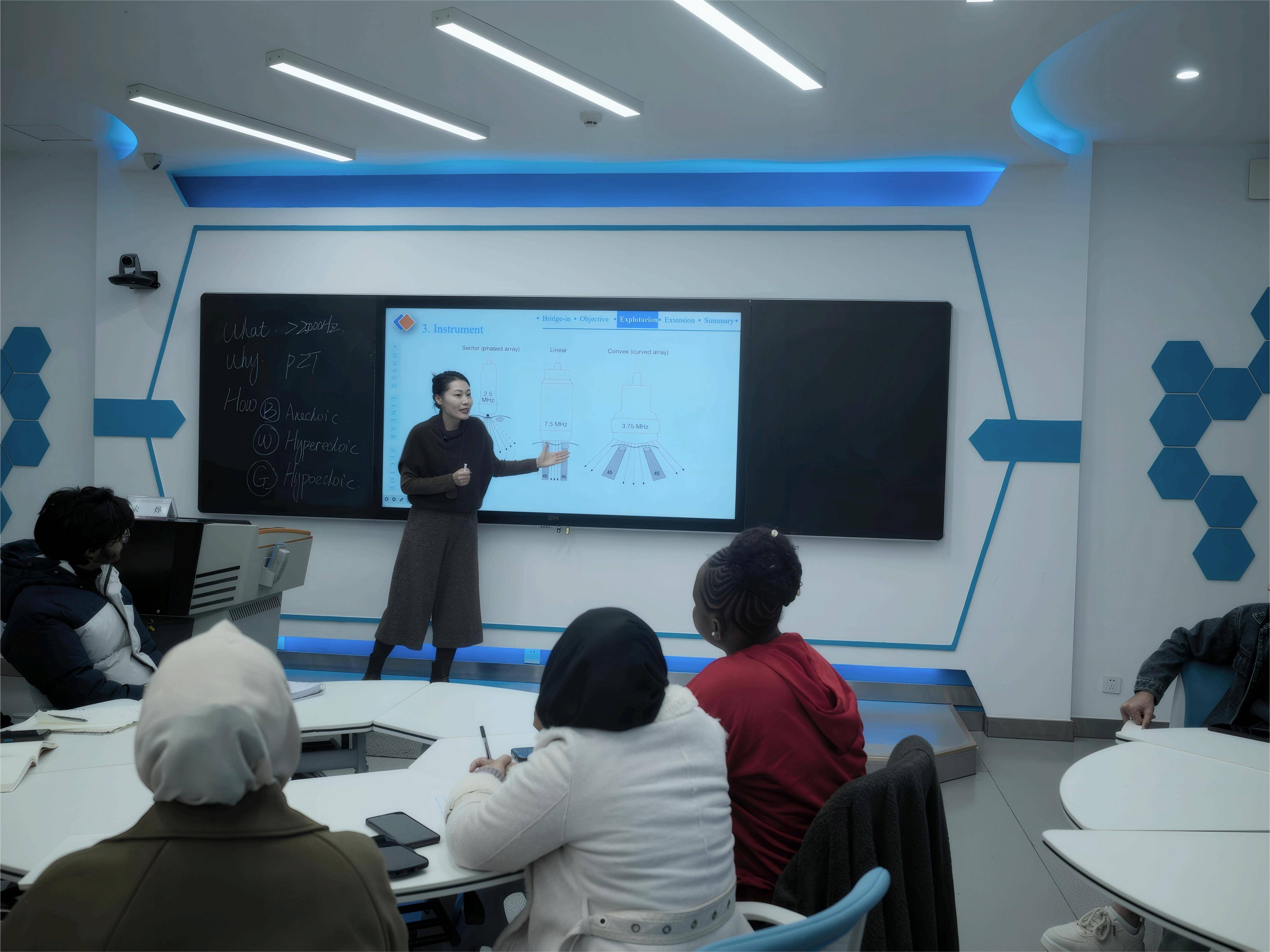 12月23日下午,由校(院)教师教学发展中心(医学教育研究发展中心)主办、国际教育学院承办的“全英探知 医道无界”首届校级全英授课公开课活动在泰安校区教学南楼C3018智慧教室成功举办。本次活动特邀校(院)教师教学发展中心青年教师培训组组长、化学与制药工程学院王虹教授及临床影像学院朱烨副院长进行全英教学展示。