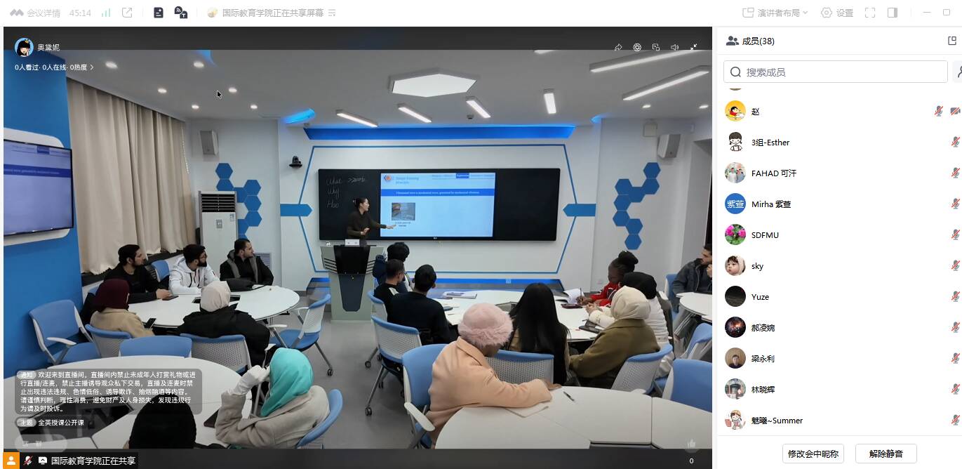 本次活动采用线上线下相结合的方式同步开展,来自校(院)相关教学单位的教师、国际教育学院管理人员及中外学生百余人参加活动。