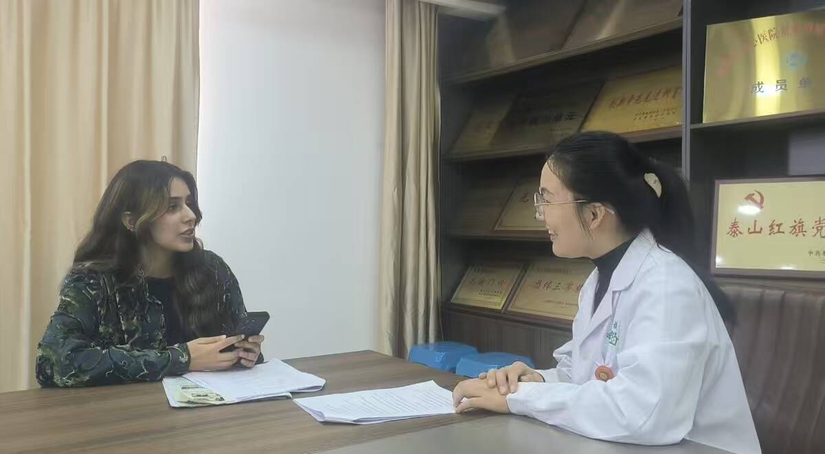 为深入学习贯彻习近平主席关于建设健康中国的重要论述,让来华留学生深入了解中国基层卫生健康服务体系,实地感受中国特色卫生与健康发展道路的基层实践,3月19日,国际教育学院组织校(院)来华留学生赴泰山区徐家楼街道社区卫生服务中心开展专题调研活动。来自摩洛哥、坦桑尼亚、乌干达、巴基斯坦、伊朗等国的18名留学生通过实地参观、健康宣教、人员访谈等形式,沉浸式体验中国基层医疗卫生服务,深入了解卫生健康的“中国方案”。