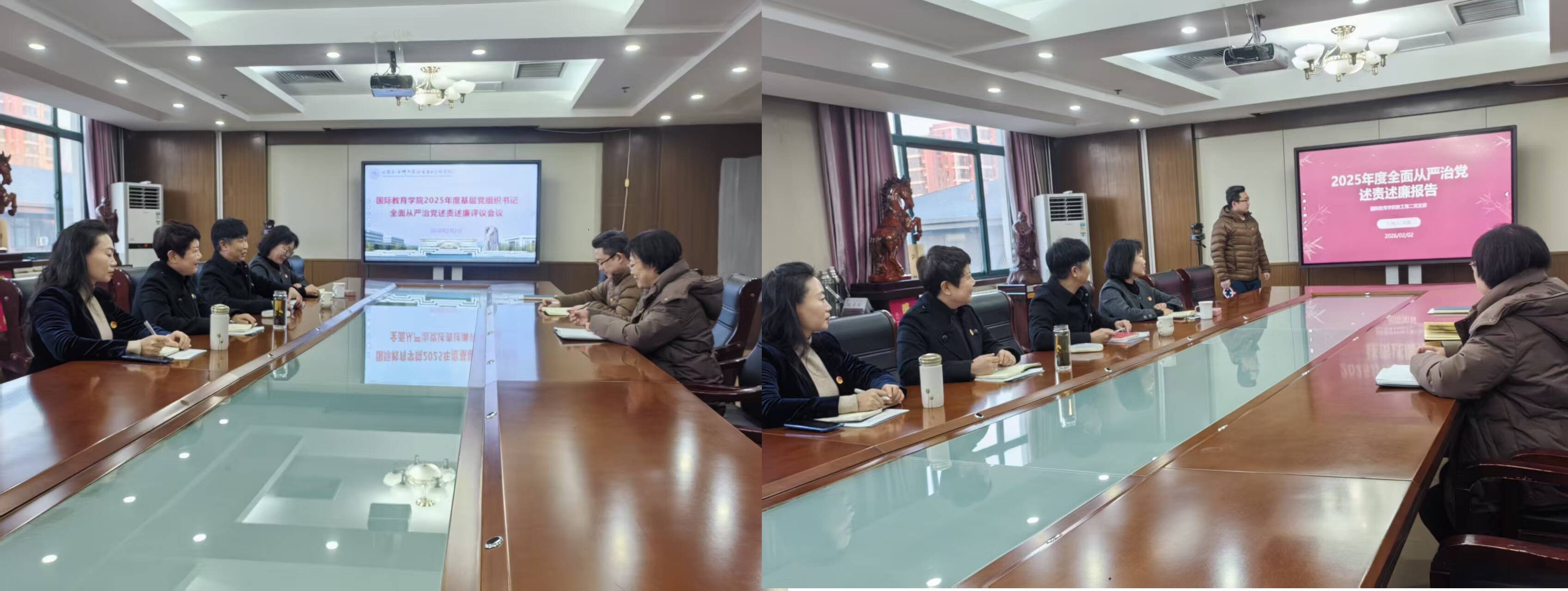 2月2日,国际教育学院召开2025年度基层党组织书记全面从严治党述责述廉评议会议和抓基层党建工作评议会议。学院党总支书记辛文勇主持会议并对各党支部书记履职情况逐一进行点评。